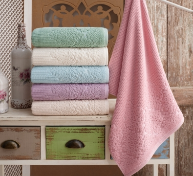 Durch die feinen Baumwollfasern und die dichte Oberflächenstruktur fühlen sich die Badehandtücher angenehm weich an.